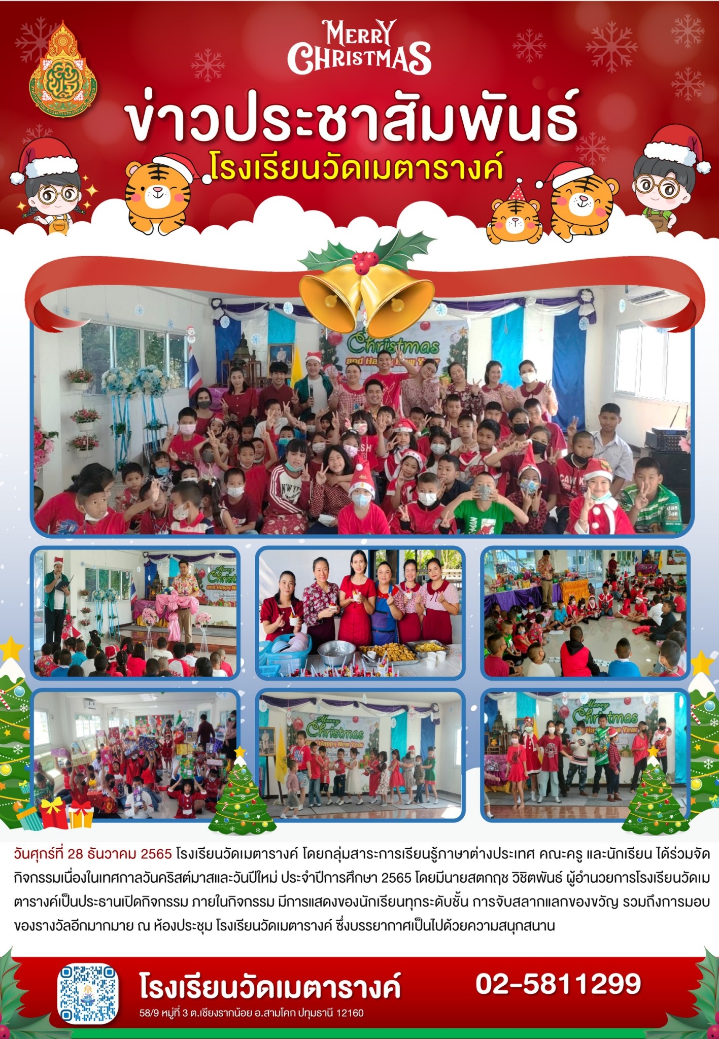 วันศุกร์ที่ 28 ธันวาคม 2565 โรงเรียนวัดเมตารางค์ โดยกลุ่มสาระการเรียนรู้ภาษาต่างประเทศ คณะครู และนักเรียน ได้ร่วมจัดกิจกรรมเนื่องในเทศกาลวันคริสต์มาสและวันปีใหม่