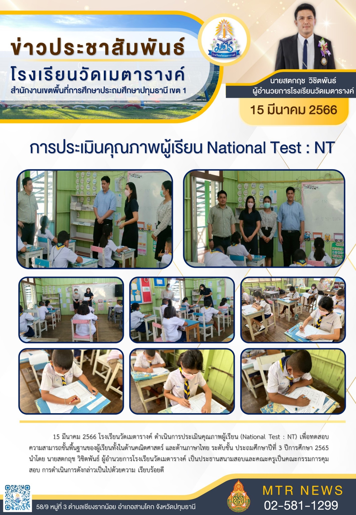 15 มีนาคม 2566 โรงเรียนวัดเมตารางค์ ดำเนินการประเมินคุณภาพผู้เรียน (National Test : NT) เพื่อทดสอบความสามารถชั้นพื้นฐานของผู้เรียนทั้งในด้านคณิตศาสตร์ และด้านภาษาไทย ระดับชั้น ประถมศึกษาปีที่ 3 ปีการศึกษา 2565 นำโดย นายสตกฤช วิชิตพันธ์ ผู้อำนวยการโรงเรียนวัดเมตารางค์ เป็นประธานสนามสอบและคณะครูเป็นคณะกรรมการคุมสอบ