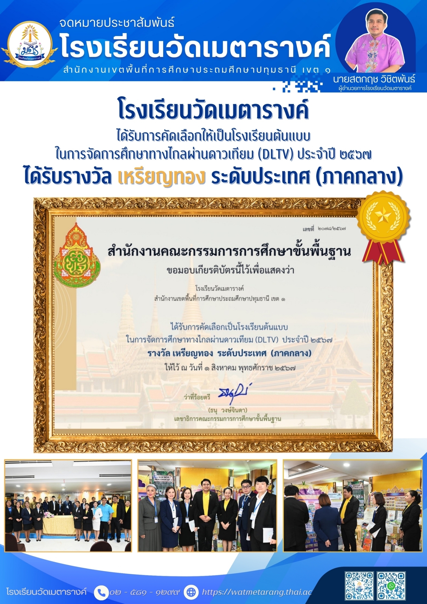รับรางวัลเหรียญทอง ระดับประเทศ ภาคกลาง (DLTV)