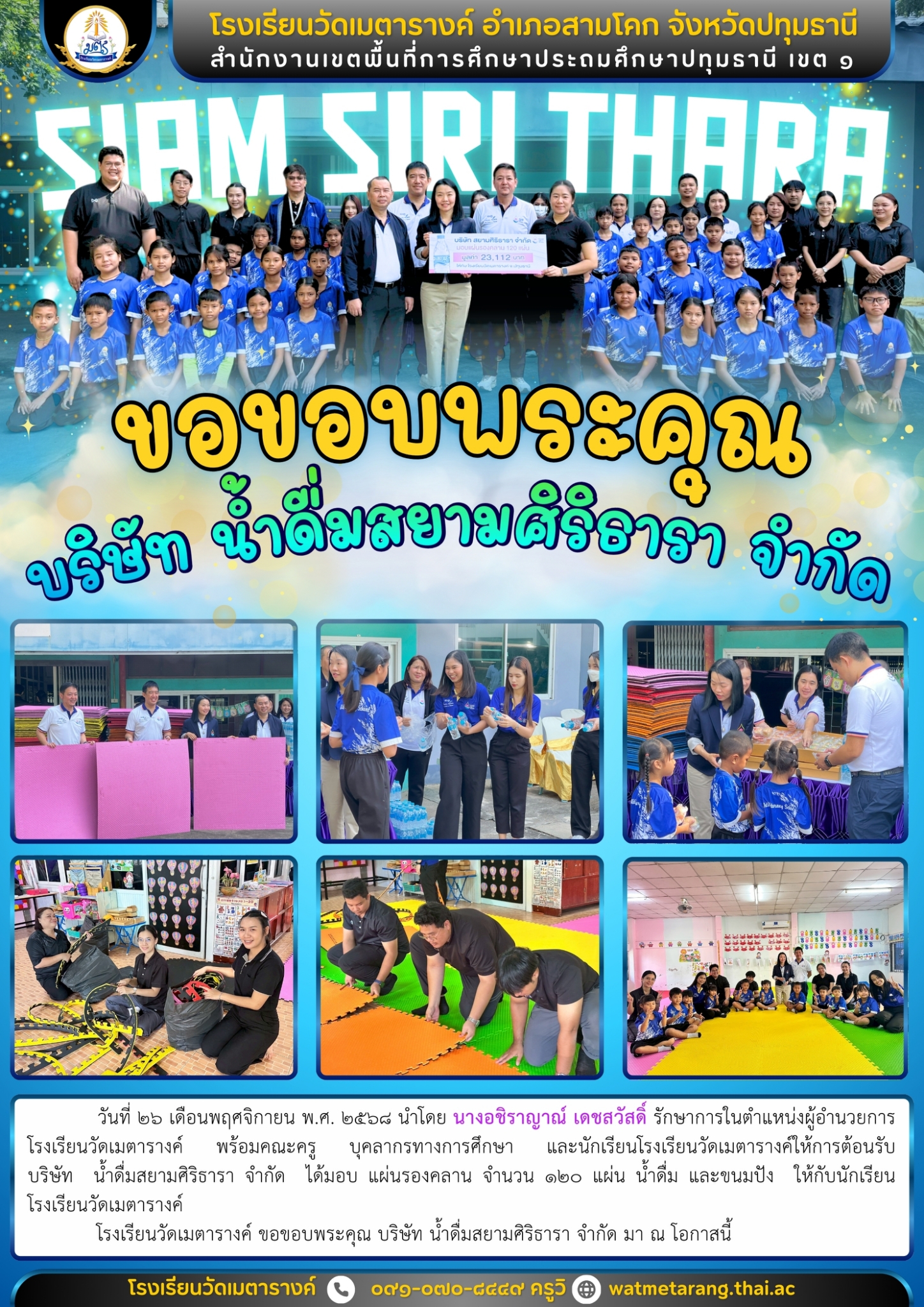 ขอขอบพระคุณ บริษัท น้ำดื่มสยามศิริธารา จำกัด
