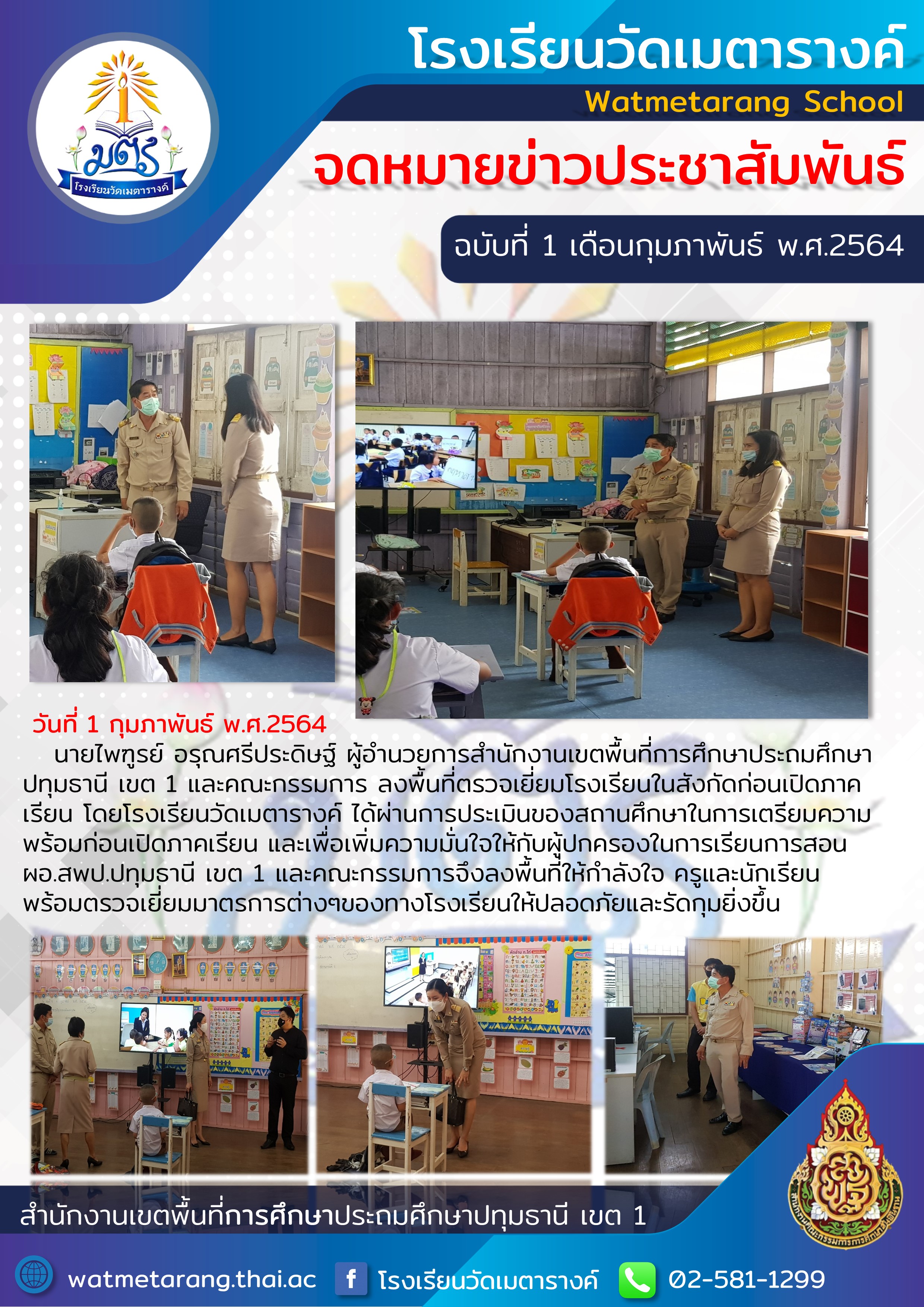 นายไพฑูรย์ อรุณศรีประดิษฐ์ ผู้อำนวยการสำนักงานเขตพื้นที่การศึกษาประถมศึกษาปทุมธานี เขต 1 และคณะกรรมการ ลงพื้นที่ตรวจเยี่ยมโรงเรียนในสังกัดก่อนเปิดภาคเรียน