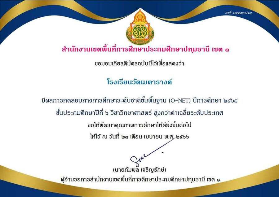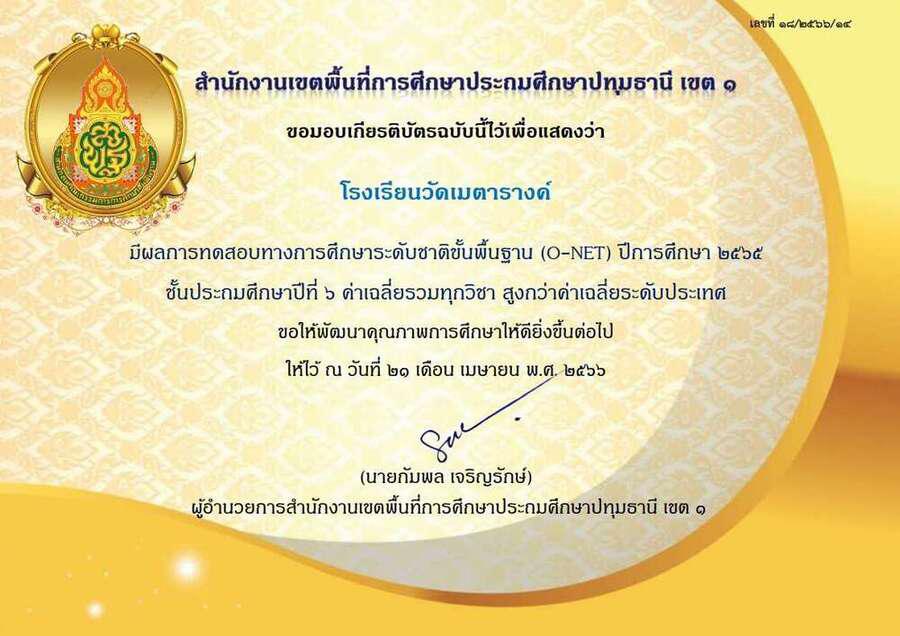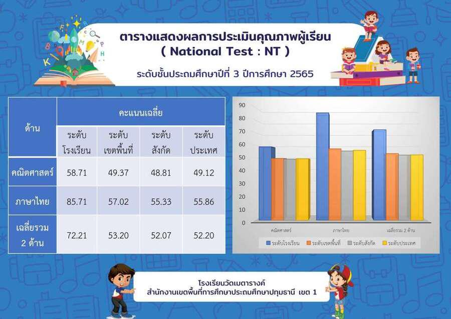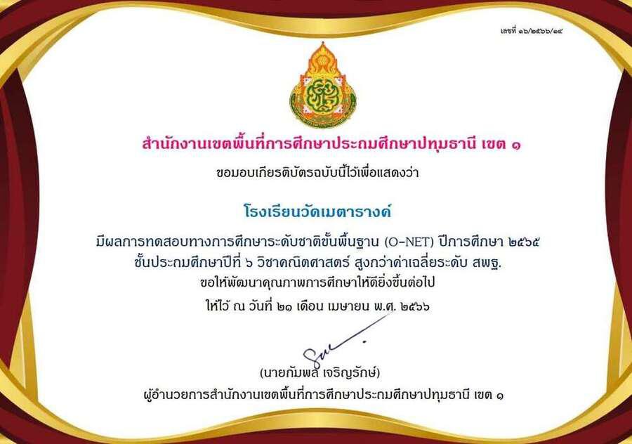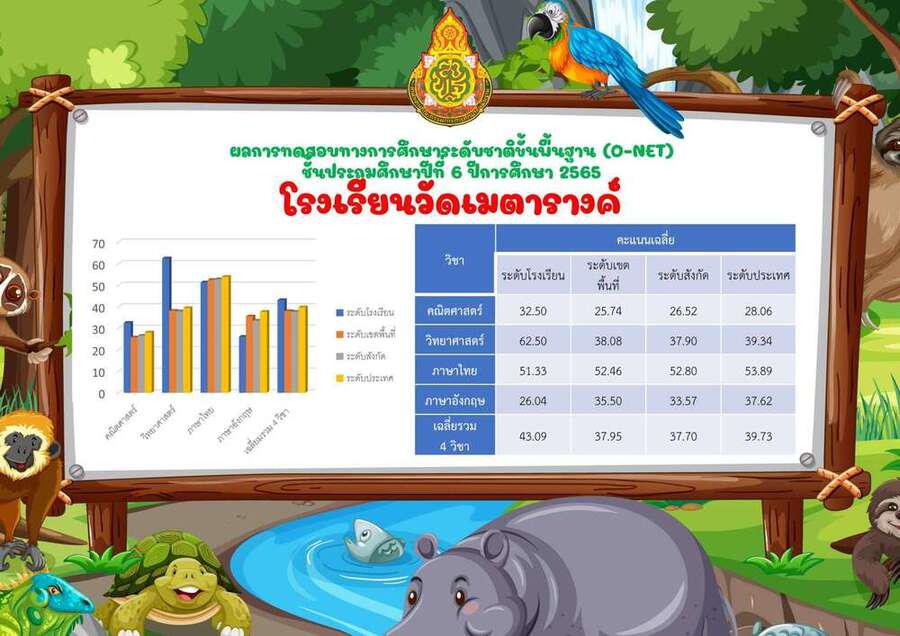 ผลการทดสอบทางการศึกษาระดับชาติขั้นพื้นฐาน (O-NET) ชั้นประถมศึกษาปีที่ 6 ปีการศึกษา 2565